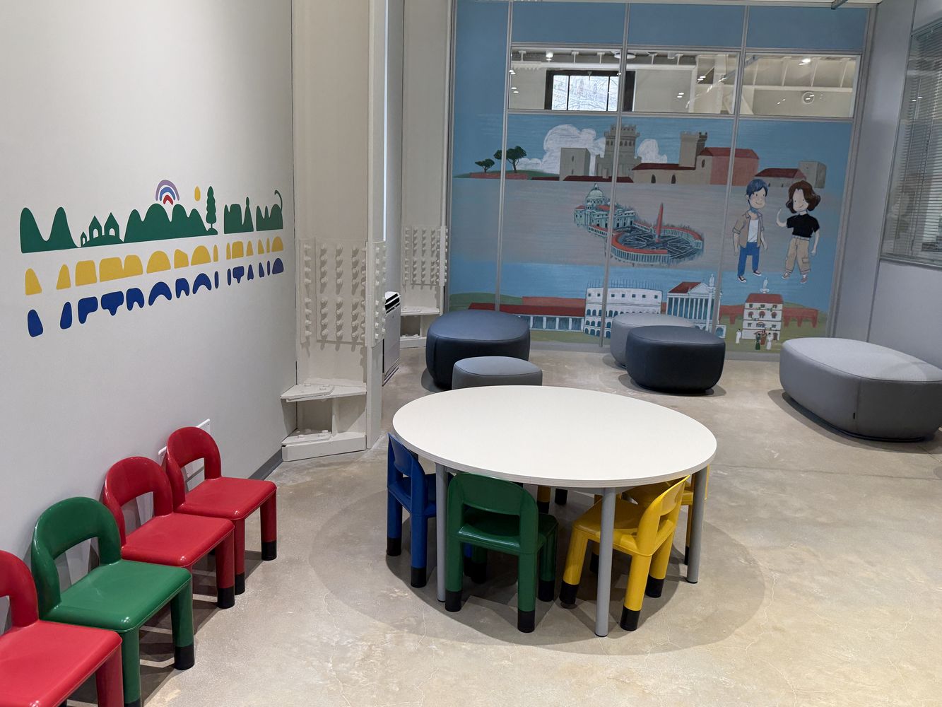 Si sviluppa su 4 piani con una superficie complessiva di circa 1075 mq, mentre lo spazio esterno occupa una superficie di 450 mq nel quale il verde si integra con spazi per sostare, incontrarsi, giocare, fare laboratori o, semplicemente, leggere un libro. L’edificio, di proprietà di Città Metropolitana, è stato allestito sulla base del concorso di progettazione espletato nel 2024 in collaborazione con la Soprintendenza Speciale Archeologia, Belle Arti e Paesaggio di Roma e con l’Ordine degli Architetti PPC di Roma e provincia, vinto dal collettivo Matrice Architetti.