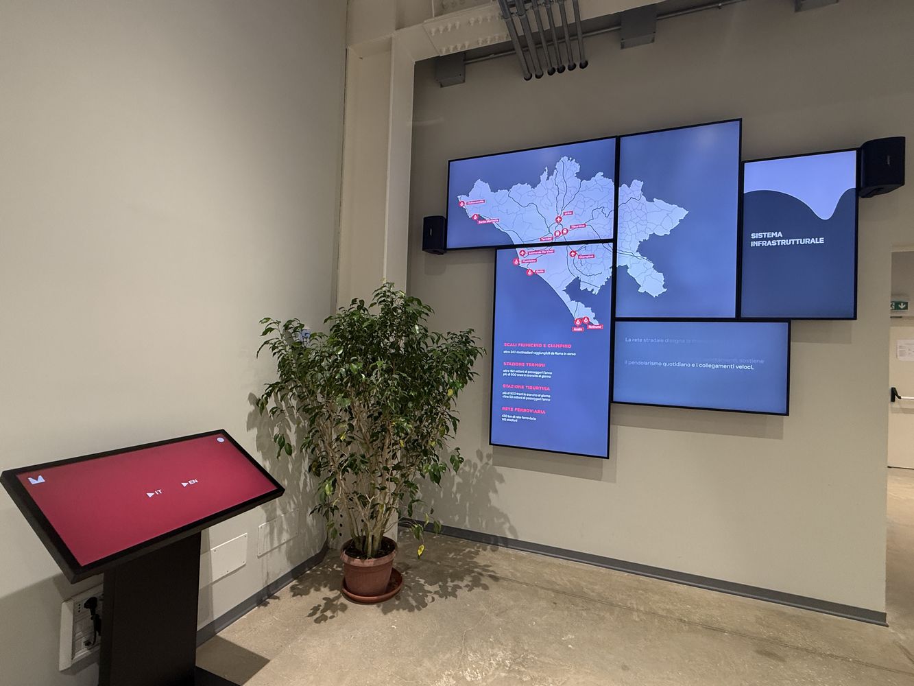 Il secondo piano ospita una sala immersiva che propone un’esperienza coinvolgente per conoscere la città metropolitana attraverso quattro video tematici: